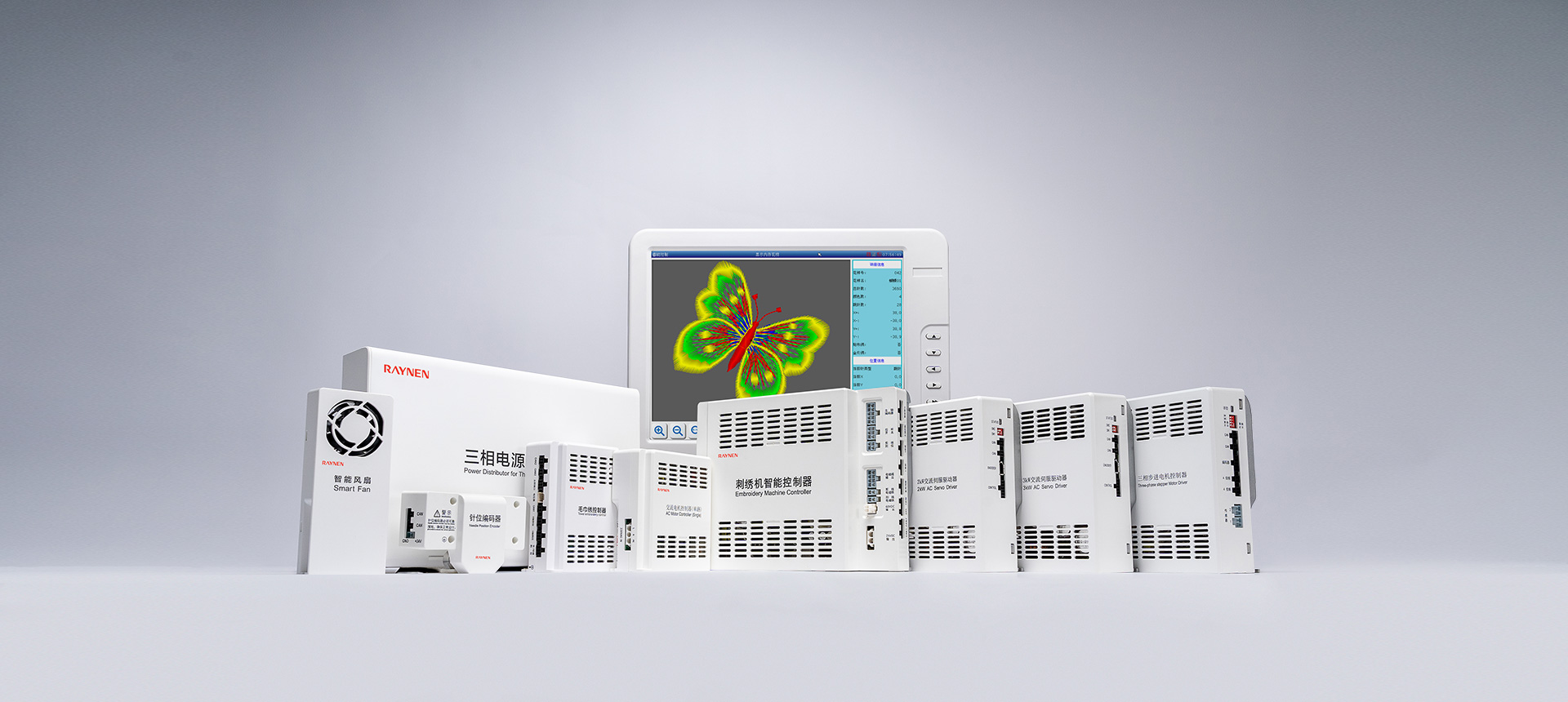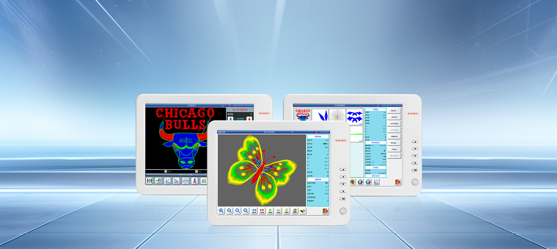 RM系列多頭毛巾繡是屬于一種立體的多工藝刺繡,電控系統(tǒng)通過毛巾主軸M,XY平面框架、D針方向軸、H環(huán)梭軸、S松線軸及T換色軸的6-7個軸綜合控制的數(shù)字控制系統(tǒng)來完成各種各樣花版圖形的鏈式毛巾繡作。在服裝皮革鞋帽等面料上產(chǎn)生出花樣絢麗、立體感強、邊角清晰的繡品。該產(chǎn)品系統(tǒng)嵌入了多種精密加工技術(shù),包括:運動軌跡的跟蹤與控制,花版的綜合顯示管理與預處理,系統(tǒng)多信息融合的協(xié)調(diào)控制,各種機械部件的優(yōu)化驅(qū)動,管控一體化的調(diào)度等。