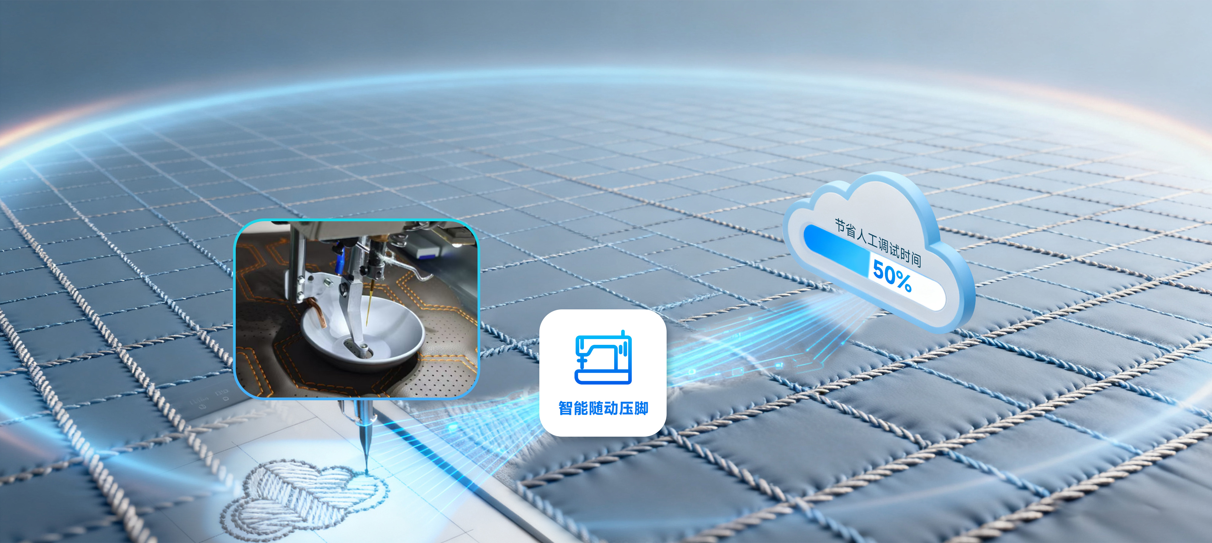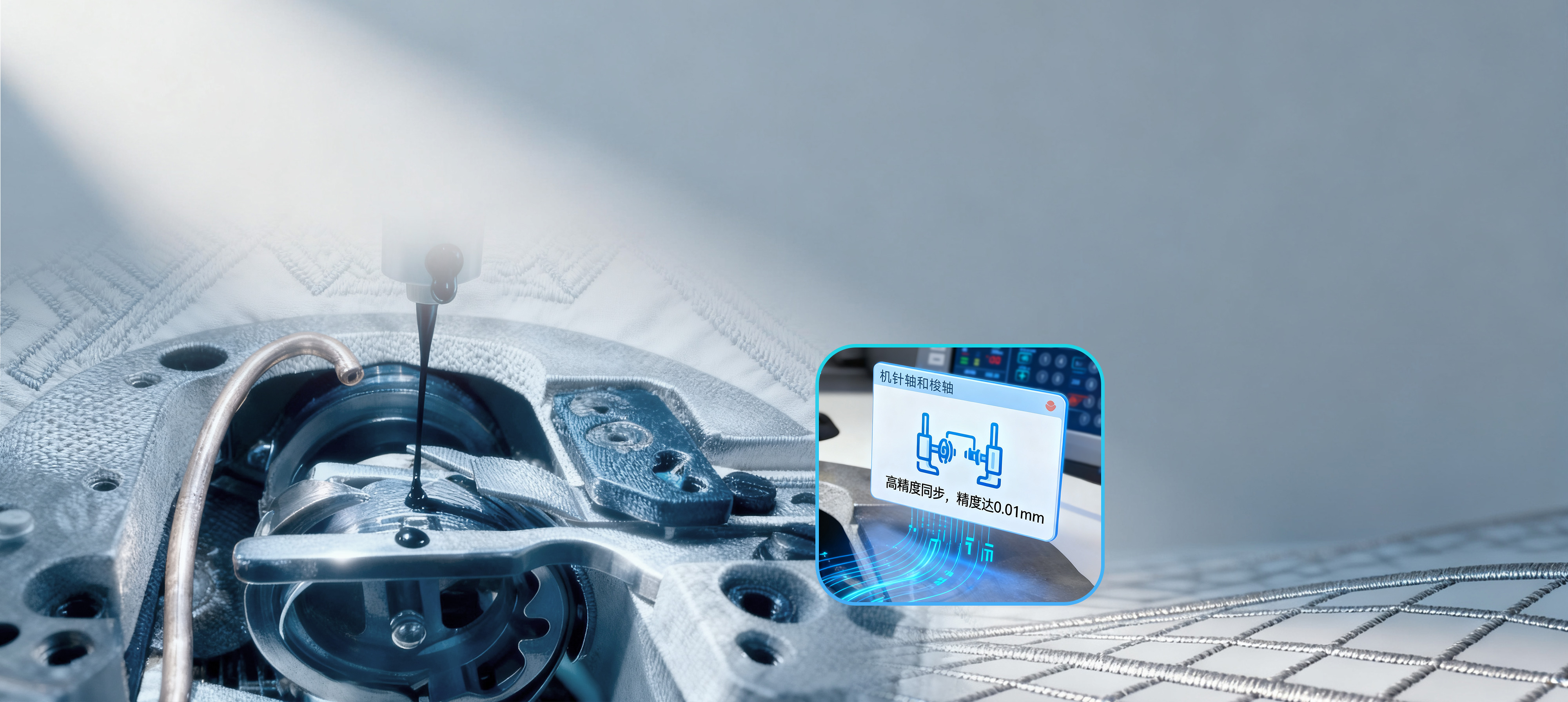 集成專利伺服算法,實(shí)現(xiàn)機(jī)針軸和梭軸高精度同步,精度達(dá)0.01mm,動(dòng)態(tài)調(diào)整縫紉角度,確保線跡始終正向